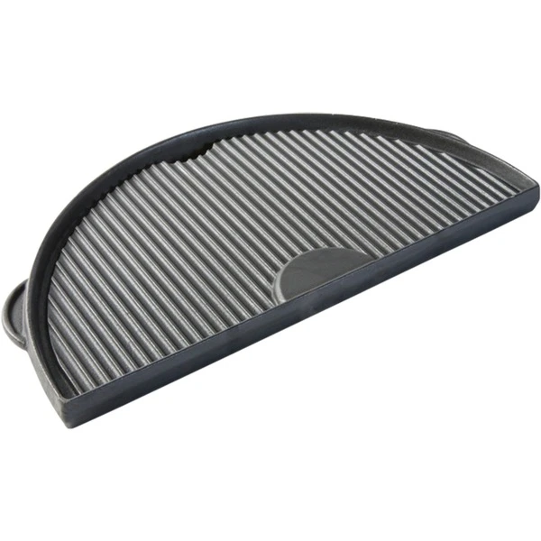 Die für das Big Green Egg XLarge passende halbrunde Wende-Grillplatte aus Gusseisen (Half Cast Iron Plancha Griddle) hat zwei verschiedene Seiten. Die geriffelte Seite eignet sich hervorragend für Fischfilets oder Toasts und auf der glatten Seite kann man Eier, Bacon, Speck, Pfannkuchen, sautierte Tomaten, Champignons oder einen Stapel American Pancakes backen. Da die Grillplatte aus Gusseisen nur die Hälfte des Rostes vom Big Green Egg in Beschlag nimmt, bleibt auch noch Platz zum Grillen übrig. Dank der halbrunden Grillplatte aus Gusseisen kann man ein leckeres Frühstück im Handumdrehen auf den Tisch zaubern.Art.-Nr.: 1597654