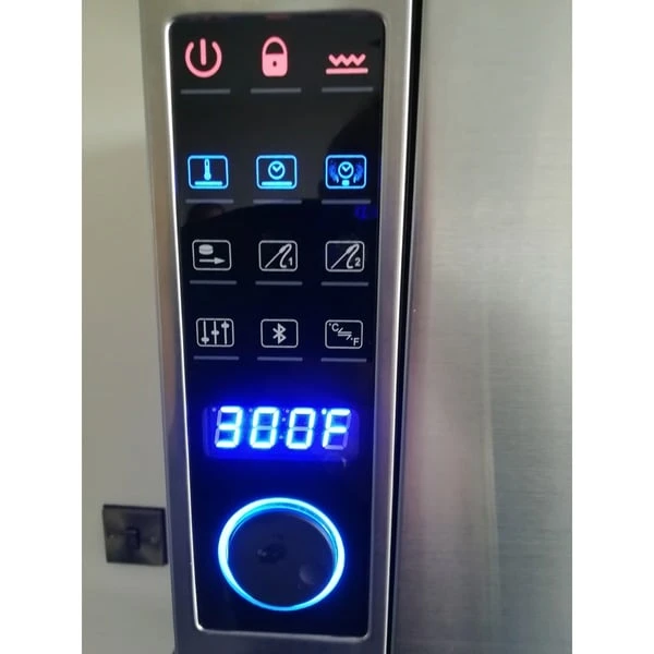 | Bedienung | Funktionen | Touchscreen, USB-Anschluss zum Einlesen von Rezepten, Ofentemperatur (wird automatisch gehalten), Garzeit (nach Ablauf der Zeit schaltet sich das Heizelement ab), Räucherzeit (unabhängig von der Garzeit) | |