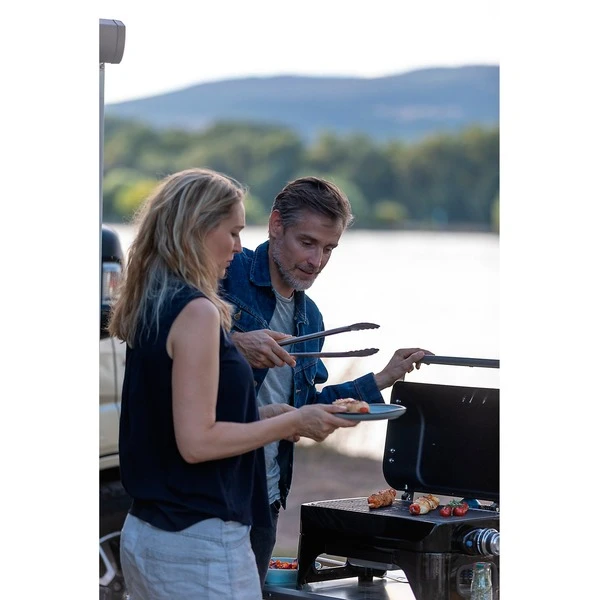 Der Campingaz Tischgrill Attitude 1200 2go CV verbindet eleganten urbanen Style mit professionellem Grillen, und hat dabei kompaktere und transportablere Maße als sein größerer Bruder. Der Attitude 1200 2go bietet viele Eigenschaften des großen Gasgrills, obwohl er durch seine Maße und den Kartuschenbetrieb der optimale Begleiter für jeden Campingausflug ist. Die Zündung des Attitude Grills funktioniert bequem mit nur einem Knopfdruck. Durch den eleganten Deckel sorgt er für schnelles und effektives Aufwärmen des Grillinnenraums, und der haltbare Campingaz Blue Flame Brenner sorgt für perfekte gleichmäßige Hitzeverteilung. Das integrierte Thermometer ermöglicht eine genaue Kontrolle der Temperatur. Dank des montierten Schlauches und der Halterung für die Kartusche kann der Grill ohne weiteren Aufbau schnell und unkompliziert in Betrieb genommen werden. Die anschließende Reinigung wird durch die von vorne entnehmbare Fettauffangschale vereinfacht. Der Attitude 1200 2go ist ein schicker, leistungsstarker und mobiler Gasgrill, der durch den Kartuschenbetrieb und die kompakten Maße in jedem Wohnmobil und auf jedem Campingplatz seinen Platz findet.Art.-Nr.: 1671797
