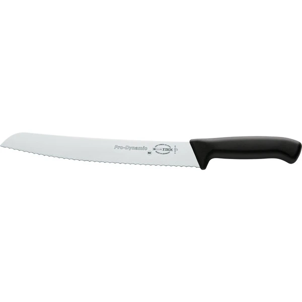 Das ProDynamic Brotmesser 85039262 ist ein spezielles Messer mit zackigem Wellenschliff für alle harten und weichen Brotsorten, aber auch Obst wie Melonen wird mit einem sauberen Schnitt in gleichmäßige Scheiben geschnitten. Die spitzen Wellen des leichten ProDynamic Brotmessers eignen sich auch ideal zum Schneiden von Krusten und Torten. Die Messer der Serie ProDynamic finden in der Gastronomie, in Großküchen und im Thekenbereich ihren Einsatz. Sie zeichnen sich durch ein geringes Gewicht aus und ermöglichen ein längeres ermüdungsfreies Arbeiten. Der ergonomisch geformte Vollkunststoffgriff und die Qualitätsklinge aus Edelstahl ergeben ein modernes Messer in klarem Design.Art.-Nr.: 1707827