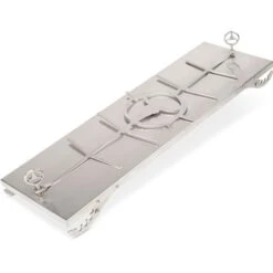 Das Moesta FlameBoard ist ein XXL Edelstahl-Flammlachsbrett. Es ist durch den hochwertigen Edelstahl nicht nur einfach zu handhaben, sondern auch unbegrenzt oft verwendbar. Das Moesta FlameBoard lässt sich auf dem Moesta Bandit FirePlace, Kugelgrills und Feuertonnen montieren, leicht reinigen und immer wieder verwenden. Mit der 4-fachen Neigungswinkelverstellung auf beiden Seiten des Flammlachsbretts kann man jederzeit die optimale Hitze für den Lachs einstellen. Während der Zubereitung kann man es auch um 180° wenden und bekommt ein gleichmäßiges Garergebnis. Ein Lachs gegrillt mit Holz über Feuer überzeugt jeden Feinschmecker. Mit den Maßen von 60cm x 19cm ist das Flammlachsbrett von der Größe so gewählt, dass auch ganze Lachsfilets oder Lachshälften auf das FlameBoard passen. Die Materialqualität von Halterung und Brett ist hervorragend und langlebig, das FlameBoard ist spülmaschinenfest und unverwüstlich.Art.-Nr.: 1862281