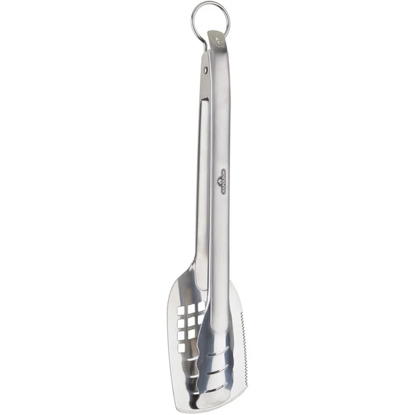 Der Napoleon 2 in 1 Zangenwender 55019 ist ein Multitool für den Grill, aus hochwertigem Edelstahl gefertigt und spülmaschinengeeignet. Man benutzt den Wender für größeres Grillgut wie Steaks oder Burger. Dank der abgeschrägten Kanten der flachen Wenderseite kann man das Grillgut ganz einfach anheben und vor dem Servieren mit der Schneidekante in Portionen teilen. Mit der integrierten Zange lässt sich auch sensibleres Grillgut einfach anfassen. Mit der Zange kann man zum Beispiel Fisch oder große Steaks fixieren, die beim Wenden etwas Unterstützung benötigen. Ein spezieller Federmechanismus sorgt für Stabilität und Kontrolle in der Ausführung, während der Schließmechanismus eine kompakte Aufbewahrung des 2 in 1 Zangenwenders ermöglicht und auch noch einen Flaschenöffner beinhaltet. Art.-Nr.: 1404506