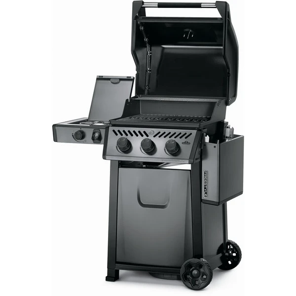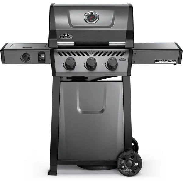 Der Napoleon Freestyle 365 SB Graphit ist ein kompakter Gasgrill mit Seitenkocher, erstklassigen Funktionen und unschlagbarem Preis-Leistungsverhältnis. Der Flammenstrahl des JETFIRE Zündsystems zündet die Hauptbrenner schnell, einfach und zuverlässig. Die Iconic Wave-Grillroste aus Gusseisen und die emaillierten Flammenschutzbleche ermöglichen eine gleichmäßige Hitze-Verteilung und ein perfektes Anbraten. Die Porzellanbeschichtung schützt sie dabei vor Rost. Der langlebige Feuerkasten aus Aluminiumguss reflektiert die Hitze des Grills und erzeugt so eine konvektive, backofenähnliche Umgebung und hervorragende Grillergebnisse. Die Temperatur der drei Edelstahlbrenner kann mit den ergonomischen Bedienknöpfen präzise gesteuert und über das integrierte Thermometer einfach kontrolliert werden. Die klassische Edelstahlblende und der Carbonfarbton verleihen dem leicht ablesbaren Thermometer einen stylischen Retrolook. Bei dem Freestyle SB-Modell verbirgt sich in der linken Seitenablage außerdem ein Kochfeld, für leckere Pfannengerichte, Soßen und Beilagen. Die schöne Graphit-Porzellanbeschichtung schützt den Deckel vor Abnutzung, Wettereinflüssen und Fingerabdrücken. Der Soft-Touch-Griff mit weicher Oberfläche ist wärmeabweisend und sorgt beim Öffnen und Schließen der Grillhaube für eine angenehme Griffigkeit. Auch die Reinigung des Gasgrills Freestyle 365 SB Graphit fällt anschließend dank der seitlich zu entnehmenden Fettauffangschale ganz leicht. Mit den beiden robusten Rollen kann der Grill leicht an jeden gewünschten Ort geschoben werden, und der geschlossene Unterschrank schützt die Gasflasche und den Wagen vor Umwelteinflüssen. Mit einer festen und einer einfach ausklappbaren Seitenablagen mit Aufhängern für Grillbesteck sowie einem Flaschenöffner ist der Freestyle für jede Gartenparty umfassend ausgestattet.Art.-Nr.: 1680027