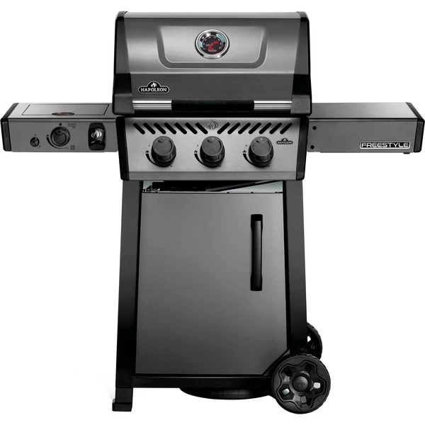 Der Napoleon Freestyle 365 SIB Graphit ist ein kompakter Gasgrill mit SIZZLE ZONE, erstklassigen Funktionen und unschlagbarem Preis-Leistungsverhältnis. Der Flammenstrahl des JETFIRE Zündsystems zündet die Hauptbrenner schnell, einfach und zuverlässig. Die Iconic Wave-Grillroste aus Gusseisen und die emaillierten Flammenschutzbleche ermöglichen eine gleichmäßige Hitze-Verteilung und ein perfektes Anbraten. Die Porzellanbeschichtung schützt sie dabei vor Rost. Der langlebige Feuerkasten aus Aluminiumguss reflektiert die Hitze des Grills und erzeugt so eine konvektive, backofenähnliche Umgebung und hervorragende Grillergebnisse. Die Temperatur der drei Edelstahlbrenner kann mit den ergonomischen Bedienknöpfen präzise gesteuert und über das integrierte Thermometer einfach kontrolliert werden. Die klassische Edelstahlblende und der Carbonfarbton verleihen dem leicht ablesbaren Thermometer einen stylischen Retrolook. Bei dem Freestyle SIB-Modell verbirgt sich in der linken Seitenablage außerdem der legendäre SIZZLE ZONE Infrarotbrenner. Dieser Hochtemperatur-Brenner verwöhnt das Grillgut bei bis zu 800°C mit köstlichen Röstaromen für Perfektion wie im Steakhaus, und ist natürlich auch perfekt für Soßen, Beilagen, Wok- oder Pfannengerichte geeignet. Die schöne Graphit-Porzellanbeschichtung schützt den Deckel vor Abnutzung, Wettereinflüssen und Fingerabdrücken. Der Soft-Touch-Griff mit weicher Oberfläche ist wärmeabweisend und sorgt beim Öffnen und Schließen der Grillhaube für eine angenehme Griffigkeit. Auch die Reinigung des Gasgrills Freestyle 365 SIB Graphit fällt anschließend dank der seitlich zu entnehmenden Fettauffangschale ganz leicht. Mit den beiden robusten Rollen kann der Grill leicht an jeden gewünschten Ort geschoben werden, und der geschlossene Unterschrank schützt die Gasflasche und den Wagen vor Umwelteinflüssen. Mit einer festen und einer einfach ausklappbaren Seitenablagen mit Aufhängern für Grillbesteck sowie einem Flaschenöffner ist der Freestyle für jede Gartenparty umfassend ausgestattet.Art.-Nr.: 100000126