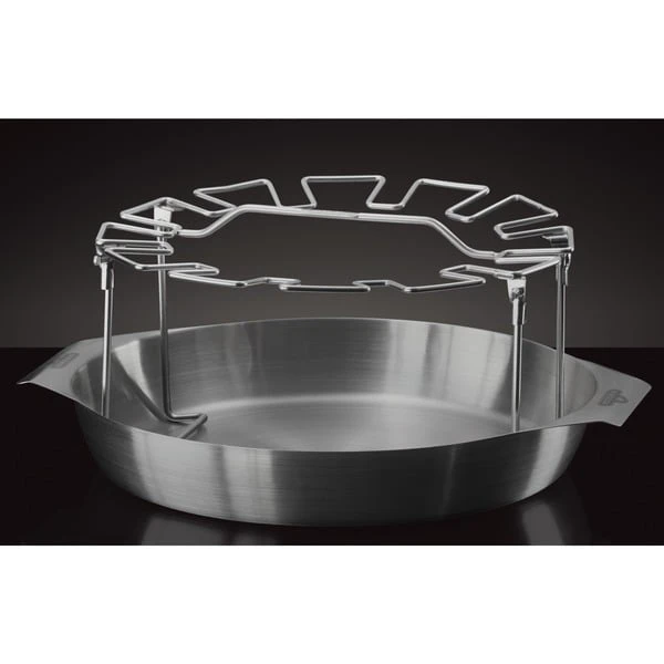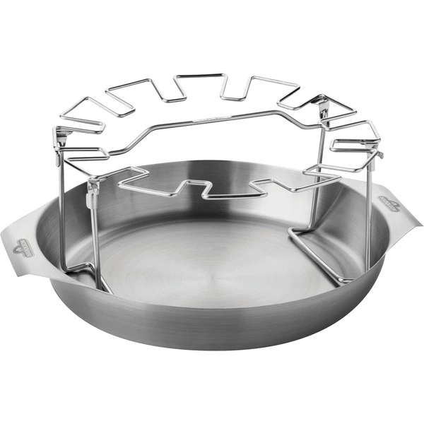 Der 2-teilige Hähnchenkeulen-Halter von Napoleon kann durch seine Vielseitigkeit auch für die Zubereitung mehrerer Gerichte auf einmal, z.B. Hähnchenschenkel und Paella eingesetzt werden. Das Gestell ermöglicht gleichmäßiges Garen von bis zu 12 aufrecht gestellten Geflügelkeulen. Die Grillschale kann als Fettauffangschale oder für die gleichzeitige bzw. separate Zubereitung von Beilagen benutzt werden. Das Set aus Edelstahl ist spülmaschinenfest, das Gestell ist klappbar und lässt sich leicht verstauen.Art.-Nr.: 1591723