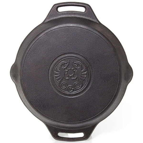 Die gusseiserne Petromax Feuerpfanne fp25h gehört mit ihrer exzellenten Wärmespeicherung zur Ausstattung jeder Küche. Ob in der Draußen-Küche über dem offenen Feuer gekocht wird oder auf dem Herd zuhause, man kann die Feuerpfanne sowohl auf herkömmlichen Herdplatten, auf Gasflammen, im Backofen als auch im Freien auf einer Kochstelle, über einem Lagerfeuer oder auf einem passenden Grill verwenden. Das Gusseisen mit seiner ausgezeichneten Wärmeverteilung und -speicherung ist dank der vorbehandelten Oberfläche (seasoned finish) sofort einsatzbereit und leicht zu pflegen.Art.-Nr.: 1532892