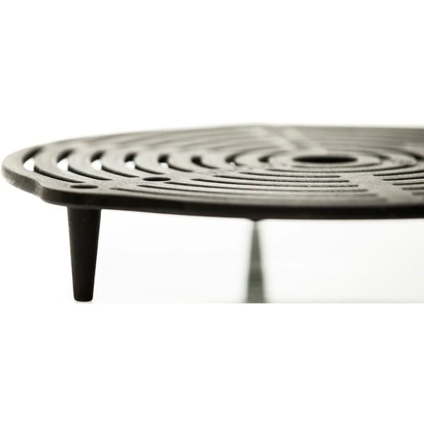 Der Petromax Stapelrost gr-s30 aus massivem Gusseisen sorgt für eine erstklassige Hitzeverteilung und ermöglicht das Backen und Garen in den Feuertöpfen ohne Anbrennen, denn die Füße schaffen einen großzügigen Abstand. Die große Version des Stapelrosts bietet neben der gewohnten gusseisernen Qualität und Haltbarkeit eine gut 7cm größere Arbeitsfläche. In den Feuertopf ab Größe ft12 einsetzbar sorgt der große Stapelrost gr-s30 dafür, dass das Gargut knusprig zubereitet wird, ohne in Kontakt mit dem Sud zu kommen. Da der Rost auf der Oberseite kleine Vertiefungen hat, lassen sich mehrere Stapelroste perfekt übereinander stellen: Backen, Dünsten und Dampfgaren wird auf mehreren Ebenen möglich. Dank der drei Füße mit einer Länge von jeweils 4,3cm steht der Stapelrost auch sicher im Feuer oder auf dem Tisch als Untersetzer. Beim Grillen in der Glut brutzelt er das perfekte Grillmuster ins Fleisch oder dient auch hier als stabile Standfläche für Teekessel oder Perkolator.Art.-Nr.: 1533697