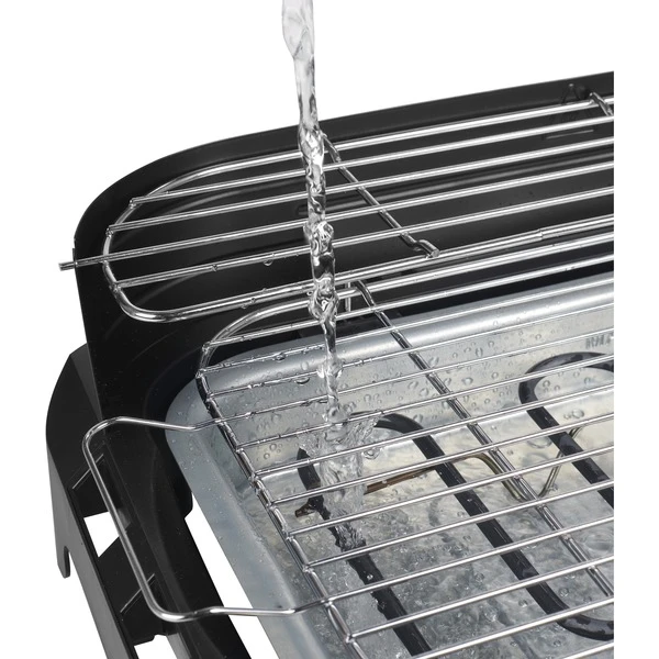 Der Elektrogrill 112250 von Princess ermöglicht ein schönes Barbecue im Garten mit der Familie oder mit Freunden. Mit einer Leistung von 2.200 Watt heizt er schnell auf und man kann innerhalb weniger Minuten Fleisch, Fisch oder Gemüse grillen. Die gesamte Flüssigkeit und das Fett tropfen durch den Grillrost in die Wasser-Auffangschale und werden gleich abgekühlt, sodass keinerlei Asche und Rauch aufsteigen können. Möchte man einmal nicht am Grill stehen, lässt sich der Grill 112250 als Tischmodell nutzen und man genießt gemeinsam ein leckeres Abendessen. Der Elektrogrill hat einen Rost von 40 x 24,5cm, so dass man verschiedene Fleisch-, Fisch- und Gemüsesorten gleichzeitig grillen kann. Auf dem oberen Grillrost kann ein größeres Stück Fleisch ruhen, damit es warm und saftig bleibt, während man das Gemüse auf dem unteren Rost blitzschnell grillt, damit alles gleichzeitig serviert werden kann. Dank der stufenlos einstellbaren Temperatur hat man eine einfache Kontrolle über den Grillvorgang und kann auch empfindlichere Produkte wie Fisch leichter zubereiten. Auch am Urlaubsort kann man die einfache Art des Grillens genießen. Dank des mitgelieferten Gestells kann der Grill stehend oder als Tischmodell verwendet werden. Der Grill ist mit einem Windschutz, einer Ablage im Untergestell und praktischen Seitentischen für das gesamte Grillzubehör ausgestattet. Außerdem ist der Grill mit den integrierten Griffen leicht zu bewegen. Der Elektrogrill 112250 lässt sich nach dem Essen sehr einfach für die Reinigung zerlegen.Art.-Nr.: 1833279