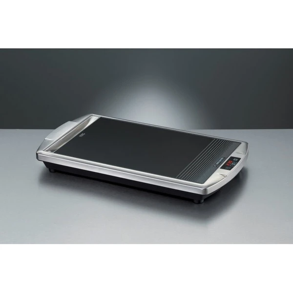 Grillträume werden wahr – mit dem Rommelsbacher Tischgrill CG 2308/TC lässt sich fettarm direkt auf der Glaskeramik grillen, eine elegante und außergewöhnliche Variante. Das formvollendete Design des hochwertigen Edelstahl-Gehäuses begeistert. Über Touch Control-Sensoren und LED-Display kann die Wunschtemperatur eingestellt werden. Die Grilltemperatur des Tischgrill CG 2308/TC wird permanent gemessen und angezeigt. Ist die Solltemperatur erreicht, ertönt ein Signalton. Die elektronische Temperatursteuerung ermöglicht scharfes Anbraten bis 380°C, aber auch Warmhalten oder sanftes Garen auf niedrigeren Temperaturen. So gelingen mit dem Tischgrill CG 2308/TC perfekte Steaks ebenso mühelos wie zart gegrillte Fischfilets, Vitamin schonend zubereitetes Gemüse oder leckere Pfannkuchen.Art.-Nr.: 1000290