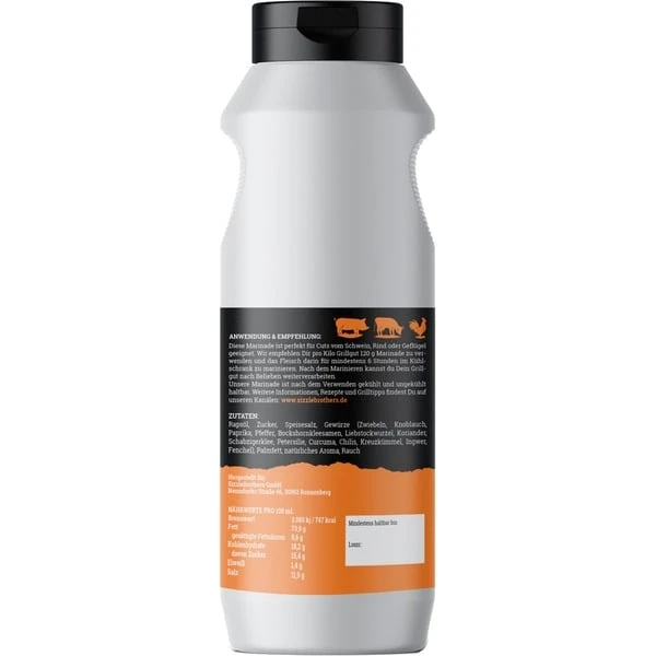 | Gebrauchsanleitung | Circa 120 g Marinade für 1 kg Grillgut | ||