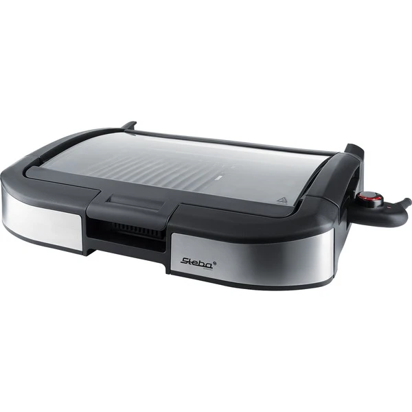 Der leistungsstarke, aber kompakte BBQ-Tischgrill VG 195 von Steba verfügt über eine Alu-Druckguss-Grillplatte und einen transparenten Glasdeckel zur Versiegelung des saftigen Geschmacks. Durch den Glasdeckel werden besonders zarte Grillergebnisse erzielt, ohne Austrocknen bei gleichzeitiger Bildung einer appetitlichen Kruste. Eigengeschmack, Inhaltsstoffe und Form bleiben so bestmöglich erhalten. Die Platte verfügt über einen gerippten Grillbereich, mit Grillmuster für Steaks oder Fisch, einen glatten Bereich für Würste, Bacon, Meeresfrüchte, Gemüse und ähnliches, und eine „Hot Zone“. Die Gussplatte heizt sich dank des integrierten Heizelements sehr schnell auf. Das integrierte Thermostat und die Temperatur-Kontrollleuchte sorgen dafür, dass alle Speisen perfekt zubereitet werden. Überschüssiges Fett wird in eine Auffangschale geleitet. Die antihaftbeschichtete Grillfläche verhindert das Festkleben von Grillgut. Der BBQ-Tischgrill VG 195 lässt sich dank abnehmbarer Grillplatte komfortabel reinigen und mit seinen kompakten Abmessungen leicht aufbewahren. Art.-Nr.: 1755887