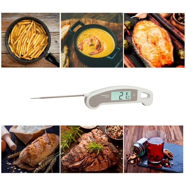 Das TFA Thermo Jack 30.1060 ist ein professionelles Klappthermometer und eignet sich ideal für die unkomplizierte Temperaturmessung in Ihrer Küche. Die Kontrolle der Kerntemperatur beim Grillen oder Braten, die temperaturgenaue Zubereitung von Leckereien aus Zucker und Schokolade, das Einkochen von Marmelade und die Überprüfung der Trinktemperatur von Wein und Getränken, das sind mögliche Einsatzbereiche des Thermo Jack Gourmet Thermometers. Nahrungsmittel jeglicher Art können mit dem handlichen Thermometer schnell, exakt und mühelos gemessen werden. Den Fühler ausklappen, einstechen und innerhalb von drei Sekunden liefert das Gerät die exakte Temperatur. Das beleuchtete Flip-Display dreht sich automatisch mit, so dass auch Linkshänder die Temperatur immer bestens ablesen können. Das Gerät ist strahlwassergeschützt und kann nach Gebrauch unter fließendem Wasser gereinigt werden. Die antibakterielle Beschichtung macht es besonders hygienisch.Art.-Nr.: 1858874
