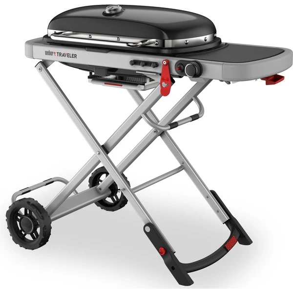 Der Weber Traveler Black ist ein praktischer, portabler Gasgrill mit zusammenklappbarem Rollwagen und Trolley-Griff. Das schnelle Aufheizen und die einfache Bedienung ermöglichen spontanes Grillen unterwegs, mit perfekten Ergebnissen und ohne großen Aufwand. Er ist schnell aufgeheizt, erreicht Temperaturen von über 320°C und bietet eine optimale Hitzeverteilung über die gesamte Grillfläche. Das stufenlos regelbare Brennerventil sorgt für eine optimale Temperaturregelung, und die elektrische Zündung für sicheres und komfortables Zünden des Brenners. Der Traveler begeistert außerdem durch das integrierte Deckelthermometer, einen großen Seitentisch für mehr Arbeitsfläche, absolute Flexibilität, Transportierbarkeit und Unabhängigkeit. So wird dieser Grill fast allen Anforderungen gerecht. Der Gasgrill ist stabil, klein zusammenfaltbar, einfach zu transportieren und leicht zu verstauen, er passt in jeden Kofferraum. Durch den geringen Gasverbrauch ermöglicht der Traveler eine lange Grillzeit, und die herausnehmbare Fettauffangschale ermöglicht anschließend eine einfache Reinigung. Der Weber Traveler wird standardmäßig mit Gaskartuschen verwendet, kann alternativ mithilfe des Adapter-Kits aber auch auf Betrieb mit Gasflaschen umgerüstet werden.Art.-Nr.: 1694181