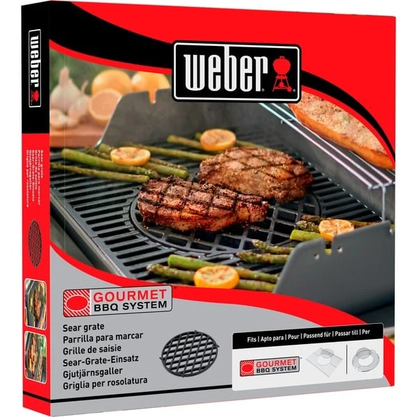 Der Grillrost Weber Sear Grate 8834 mit 30cm Ø eignet sich für Weber Grills mit Gourmet BBQ System Grillrost und bietet individuelle Zubereitungsmöglichkeiten. Der porzellanemaillierte Grillrost aus Gusseisen mit dem typischen Rautenmuster gewährleistet eine gleichmäßige Wärmeverteilung, sorgt für ein professionelles Grillmuster und schließt den Fleischsaft und das Aroma im Grillgut ein.Art.-Nr.: 1014996